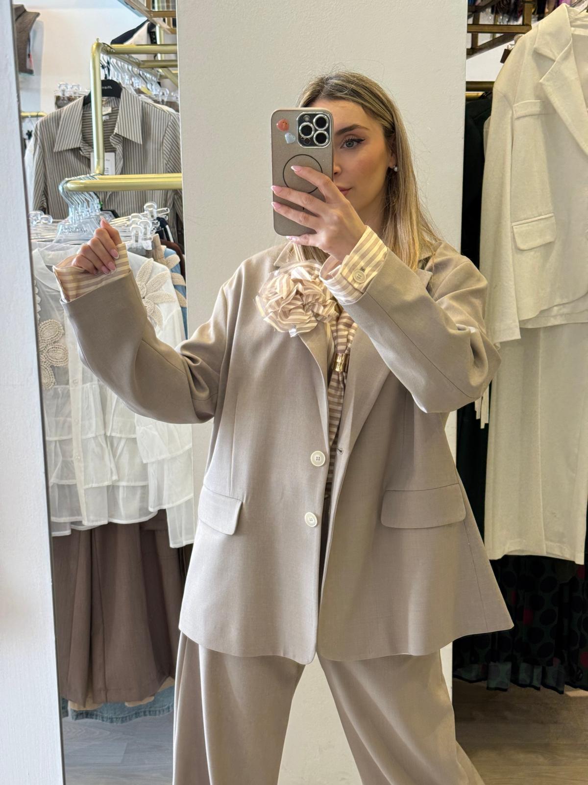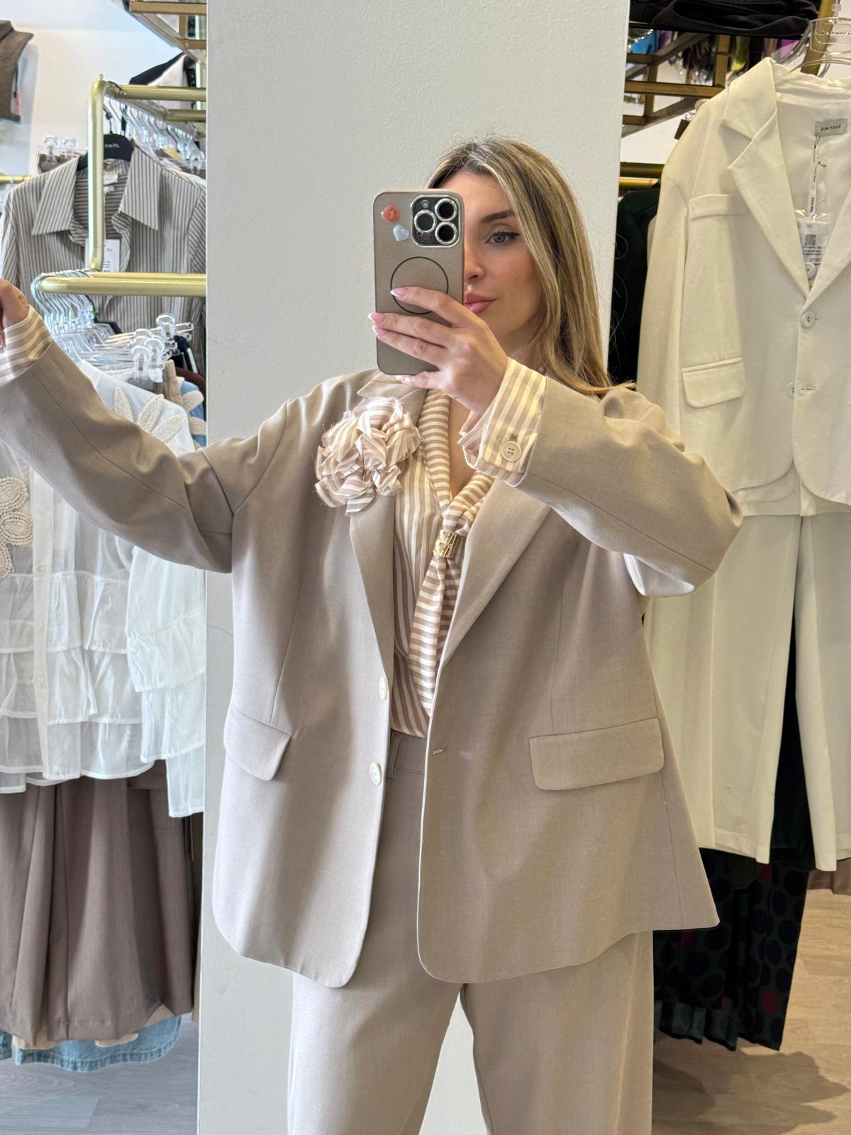 Giacca dal taglio generoso e avvolgente, perfetta per uno stile rilassato e sofisticato. Caratterizzata da una spilla removibile che permette di personalizzare il look secondo le tue preferenze. Versatile e comoda, si adatta facilmente a molteplici occasioni, dal casual al più elegante. Un capo essenziale che combina praticità e design contemporaneo.