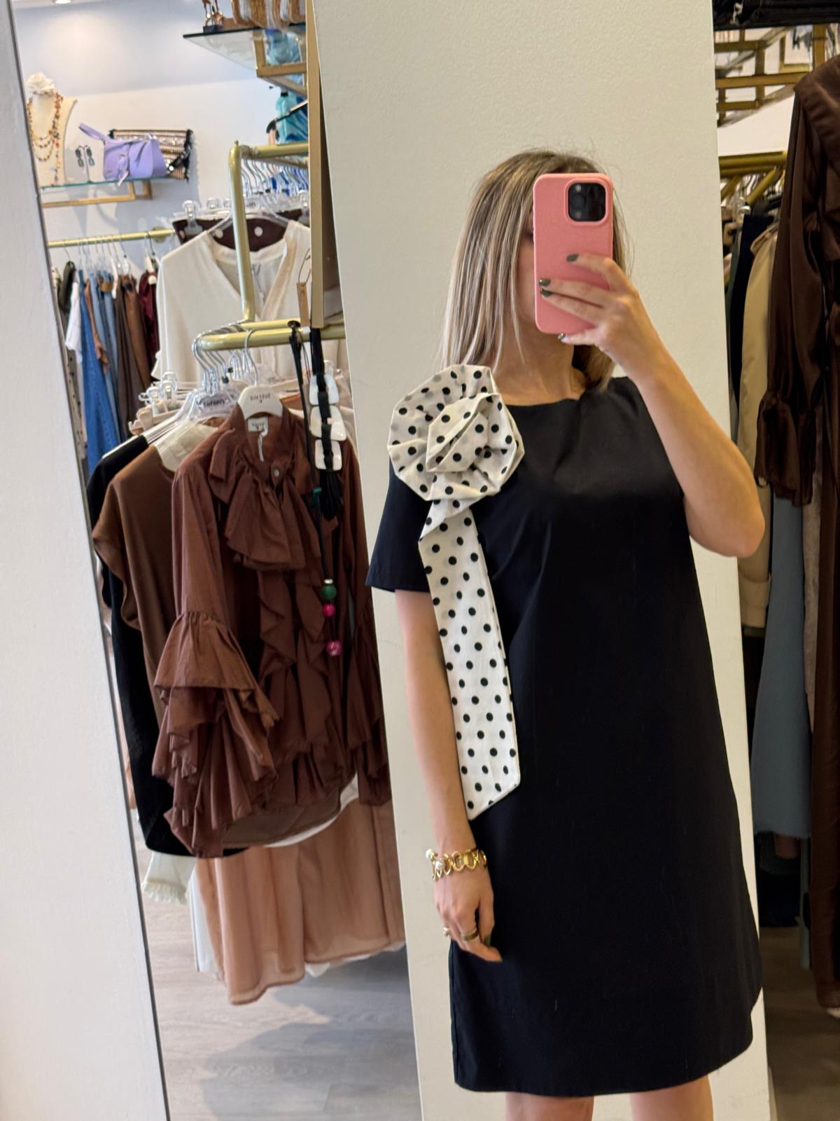 Questo abito Abito è perfetto per ogni occasione! Con la sua lunghezza al ginocchio, la spilla a fiore con pois sfondo bianco e pois neri, e le tasche pratiche, vi farà sentire eleganti e comode allo stesso tempo. Realizzato al 100% in cotone, vi garantisce un comfort senza precedenti.