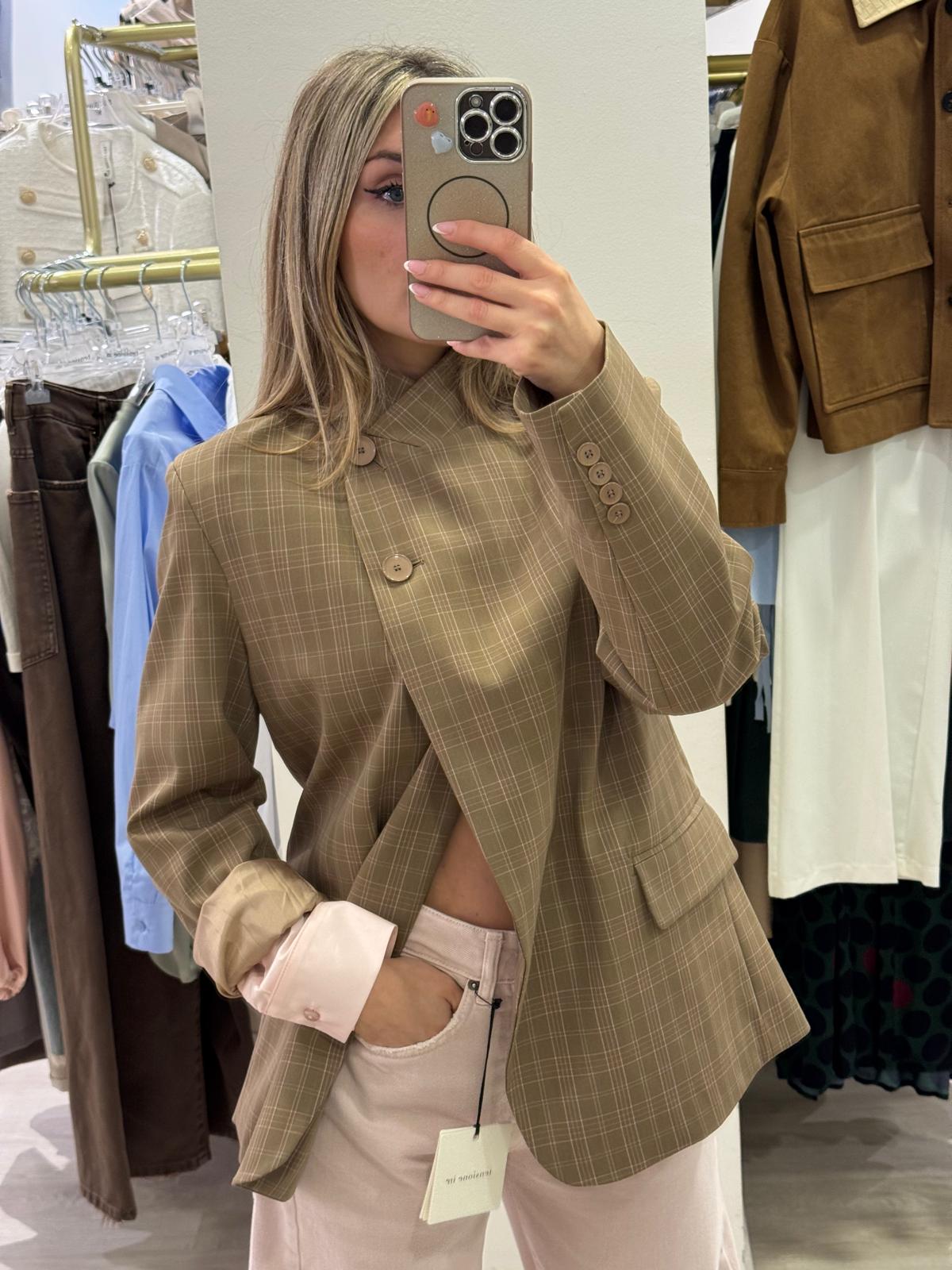 Giacca in stile coreano con motivo a quadri e linee rosa che catturano lo sguardo. La vestibilità over garantisce comfort e libertà di movimento, perfetta per un look casual e trendy. Ideale per chi ama lo stile contemporaneo con un tocco di eleganza minimalista. Un pezzo versatile da indossare in ogni stagione.