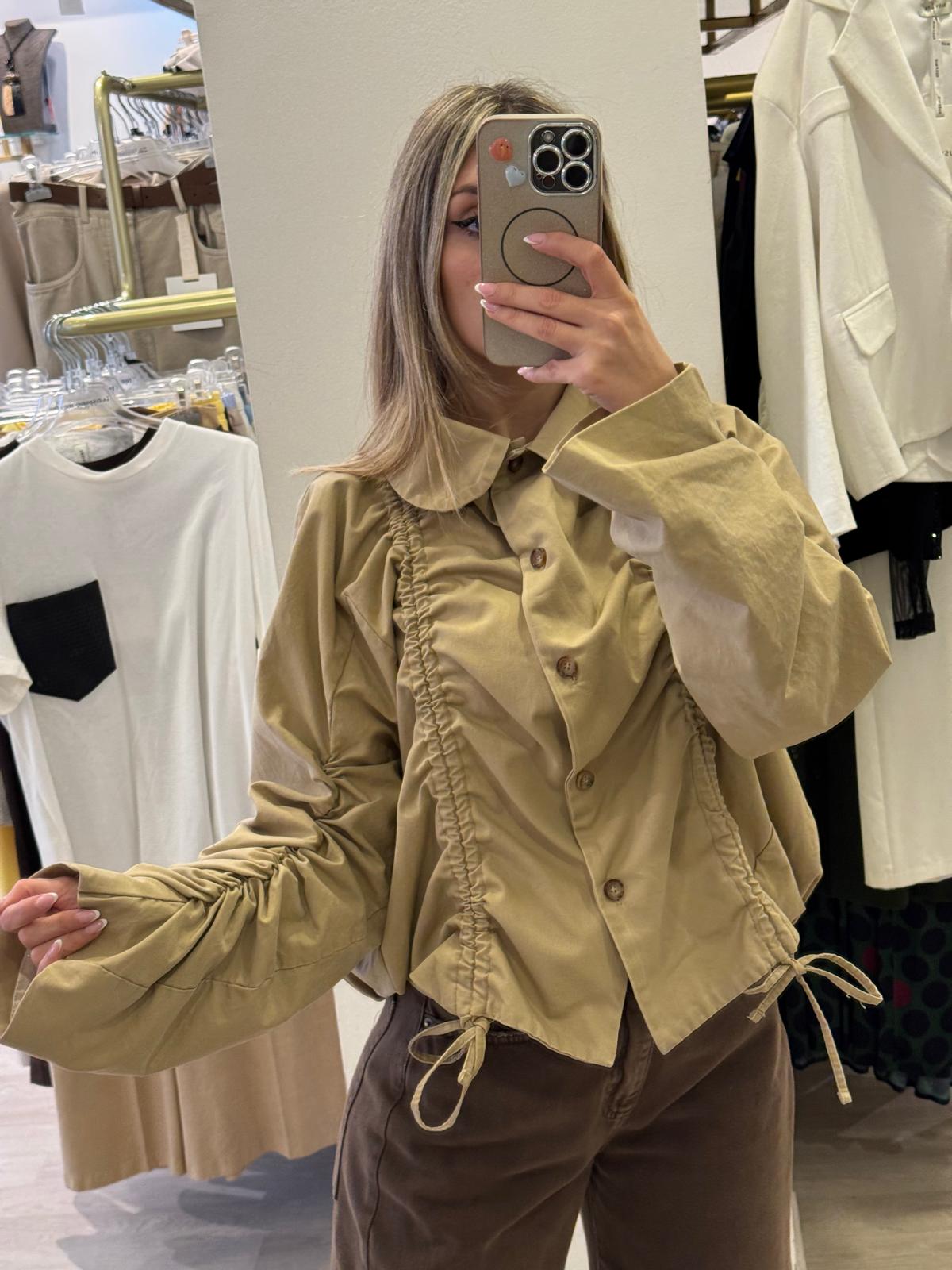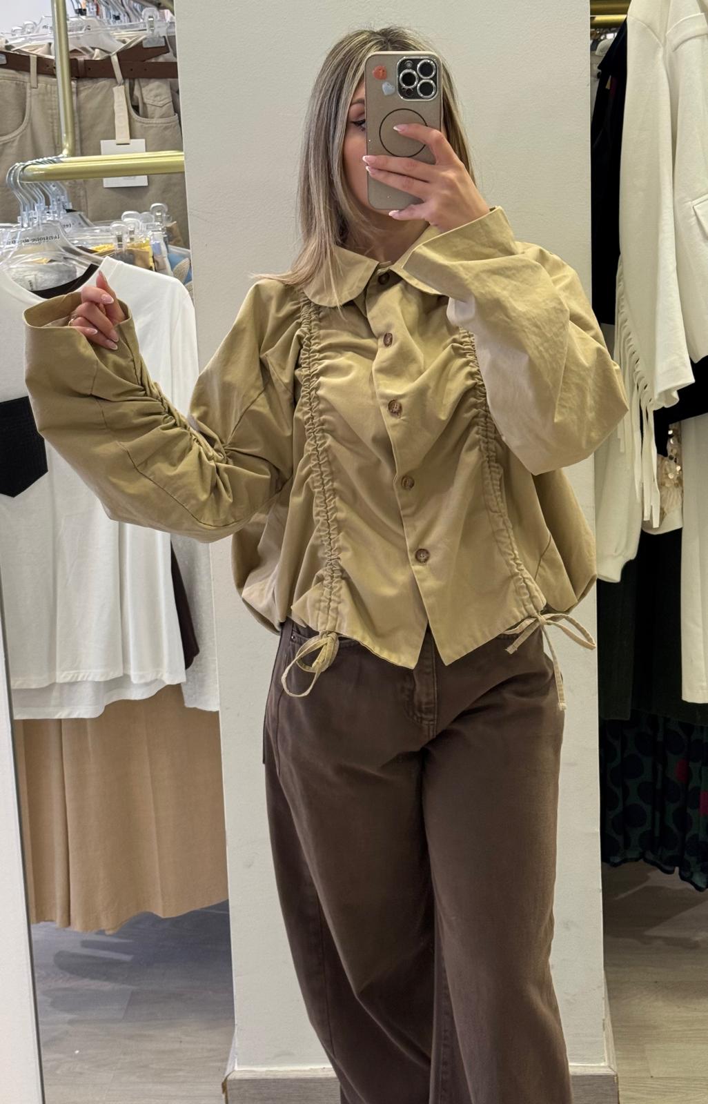 Giubbino arricciato in tessuto morbido e versatile, perfetto per creare silhouette dinamiche e affascinanti. Il design regolabile con bottoni consente di adattare la vestibilità secondo le tue preferenze, passando da una linea più aderente a una più comoda e rilassata.