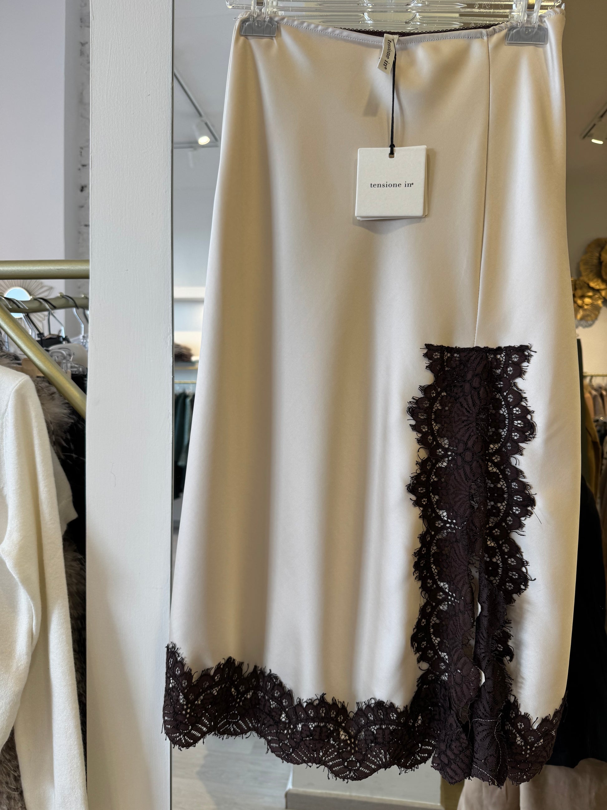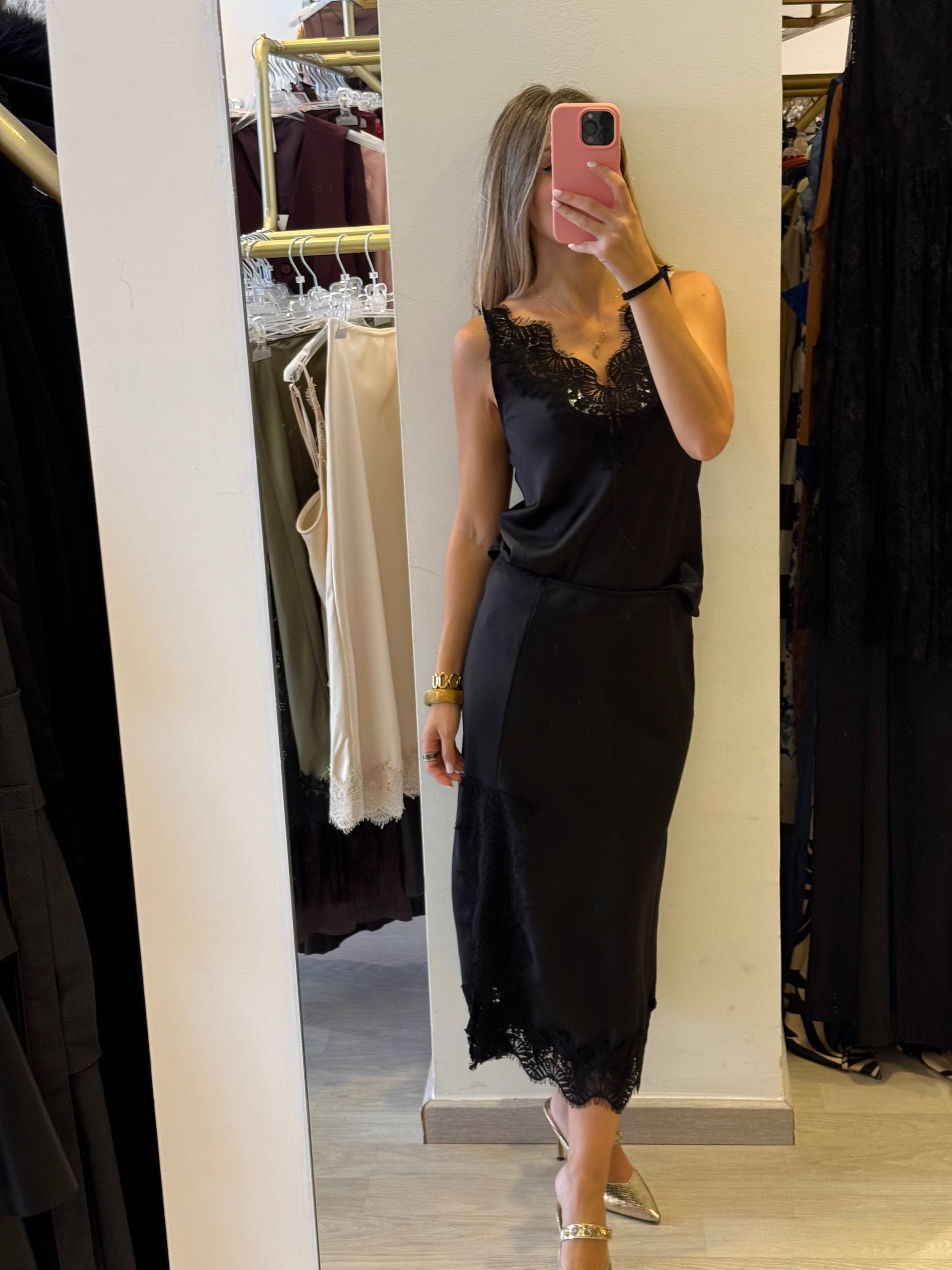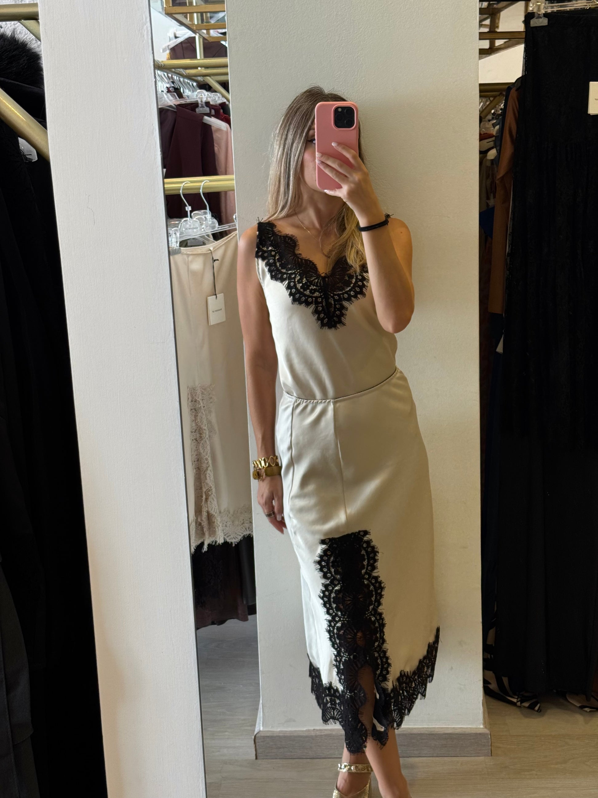 Questa gonna in satin con spacco è arricchita da un delicato contrasto in pizzo, che ne esalta l’eleganza e la finezza. Perfetta per chi cerca un capo sofisticato e raffinato, combina tessuti di qualità con un design studiato per valorizzare la silhouette, offrendo comfort e stile senza compromessi.