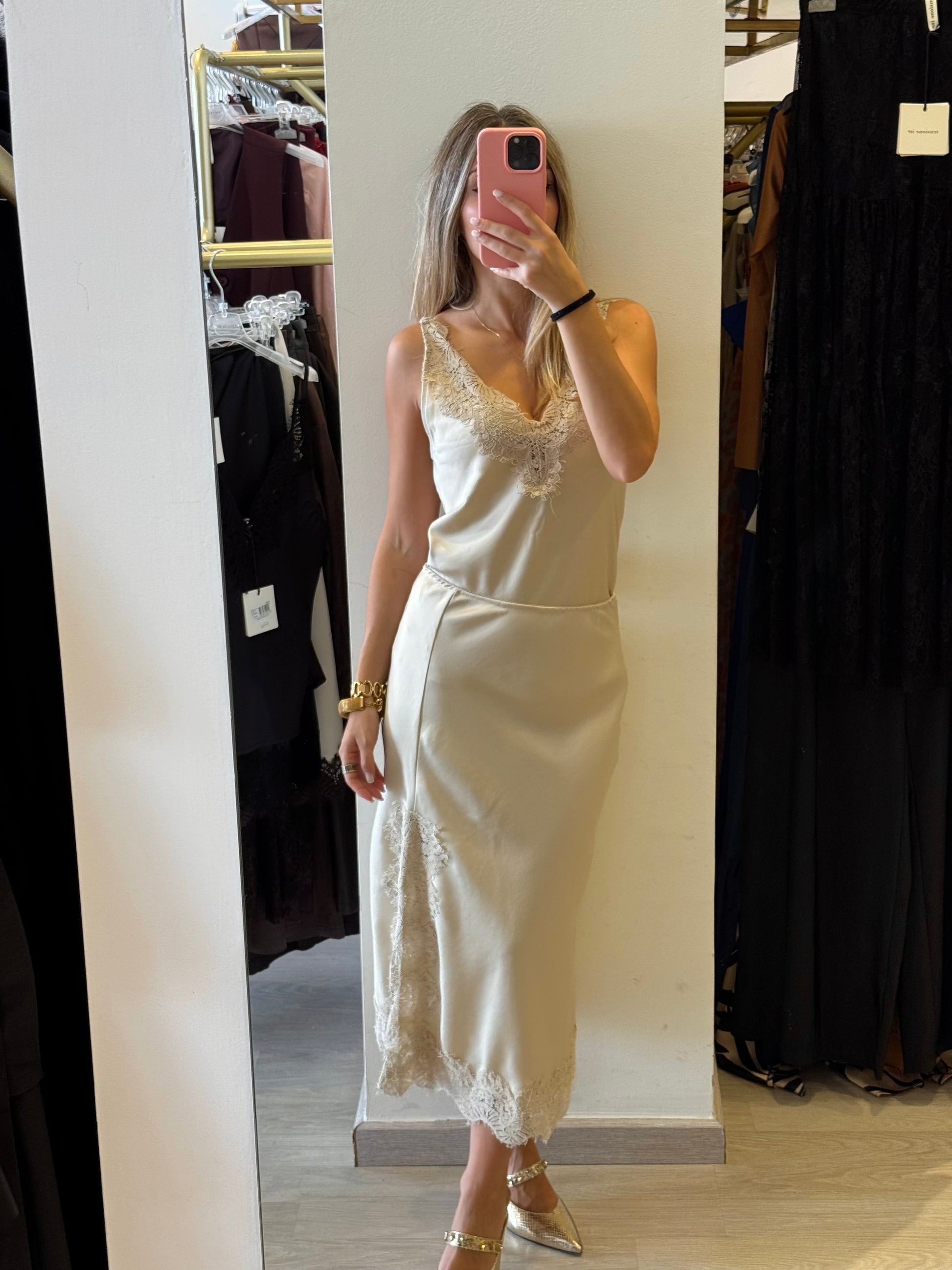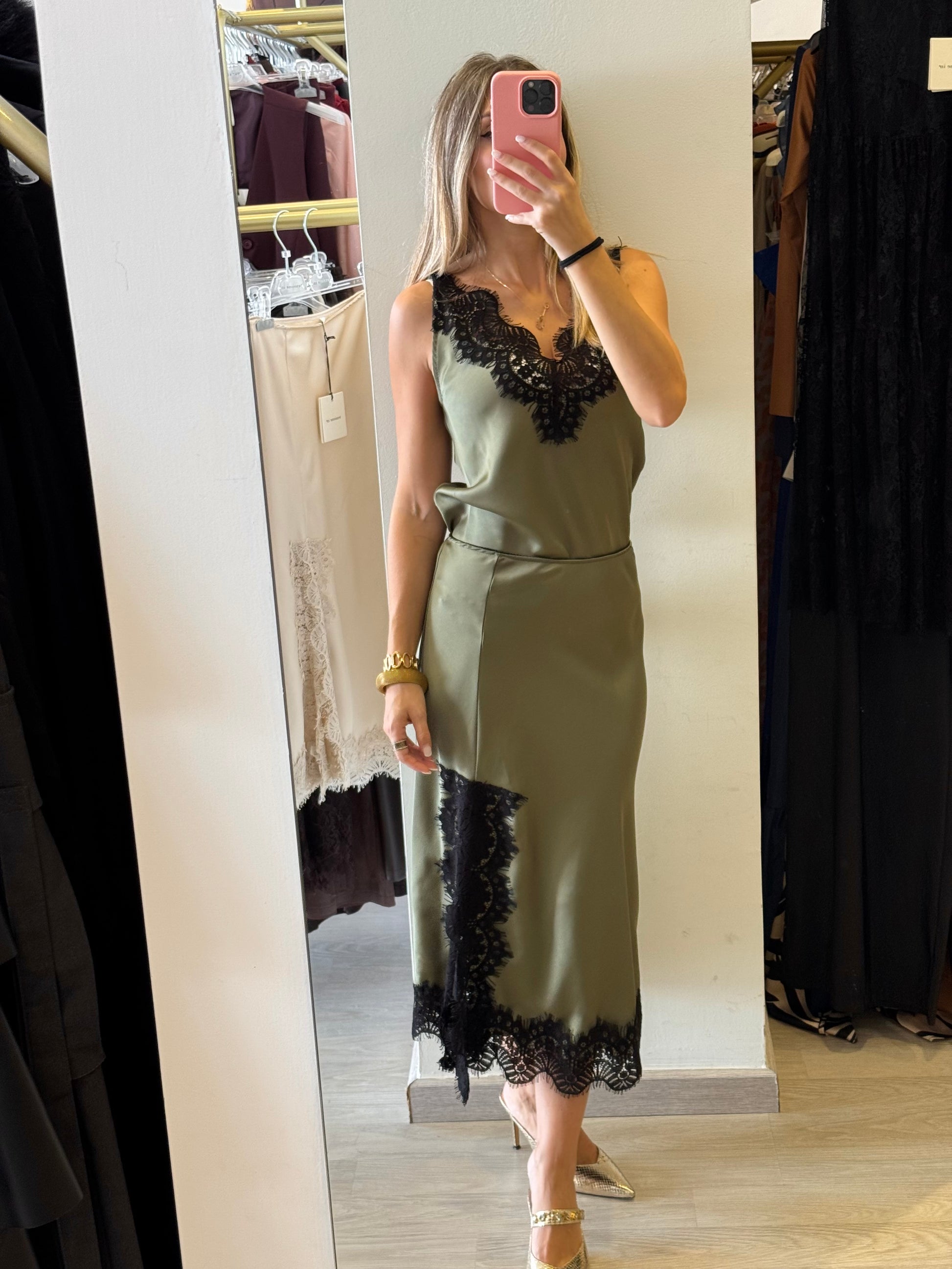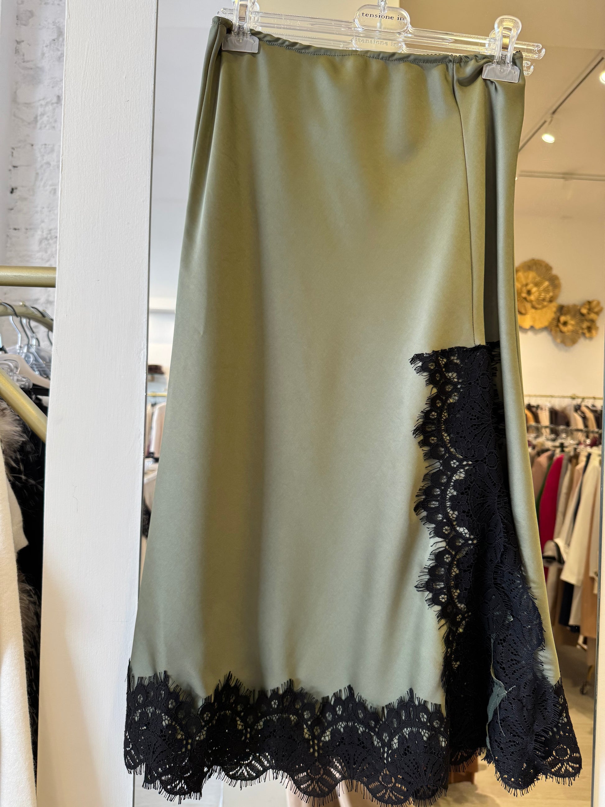 Questa gonna in satin con spacco è arricchita da un delicato contrasto in pizzo, che ne esalta l’eleganza e la finezza. Perfetta per chi cerca un capo sofisticato e raffinato, combina tessuti di qualità con un design studiato per valorizzare la silhouette, offrendo comfort e stile senza compromessi.