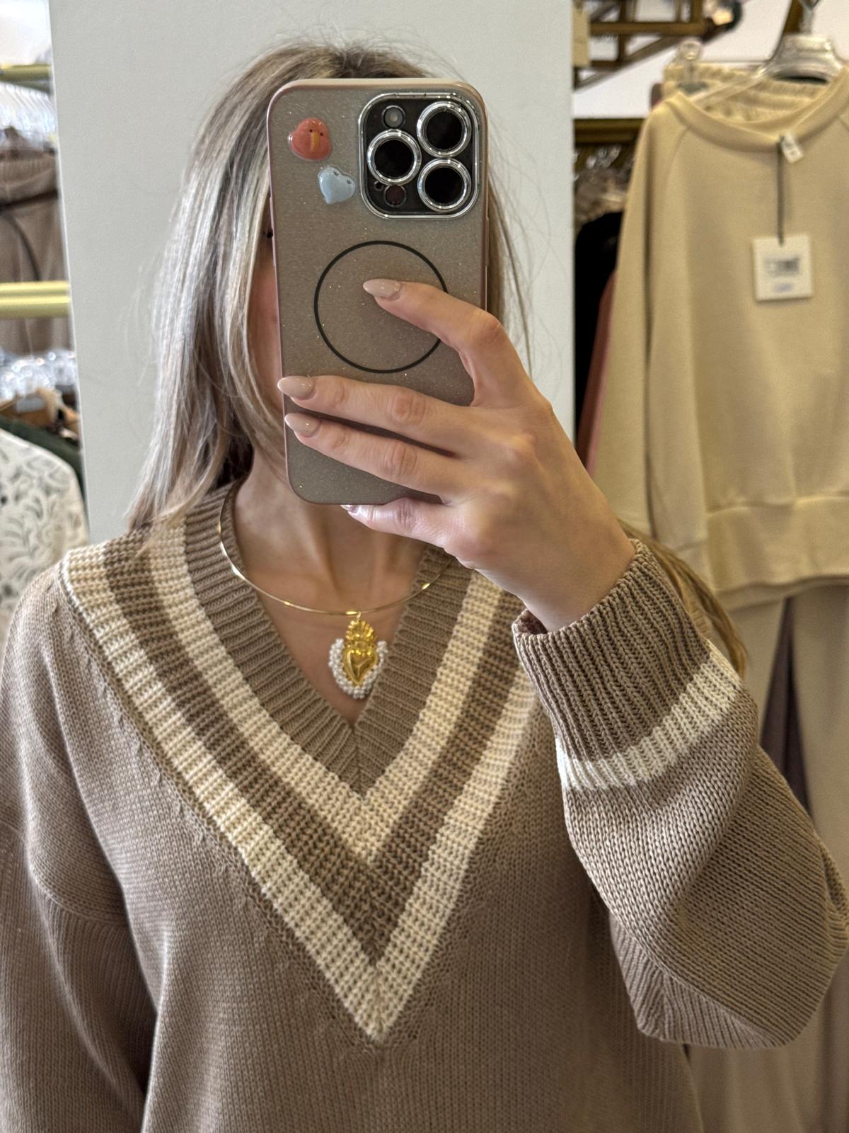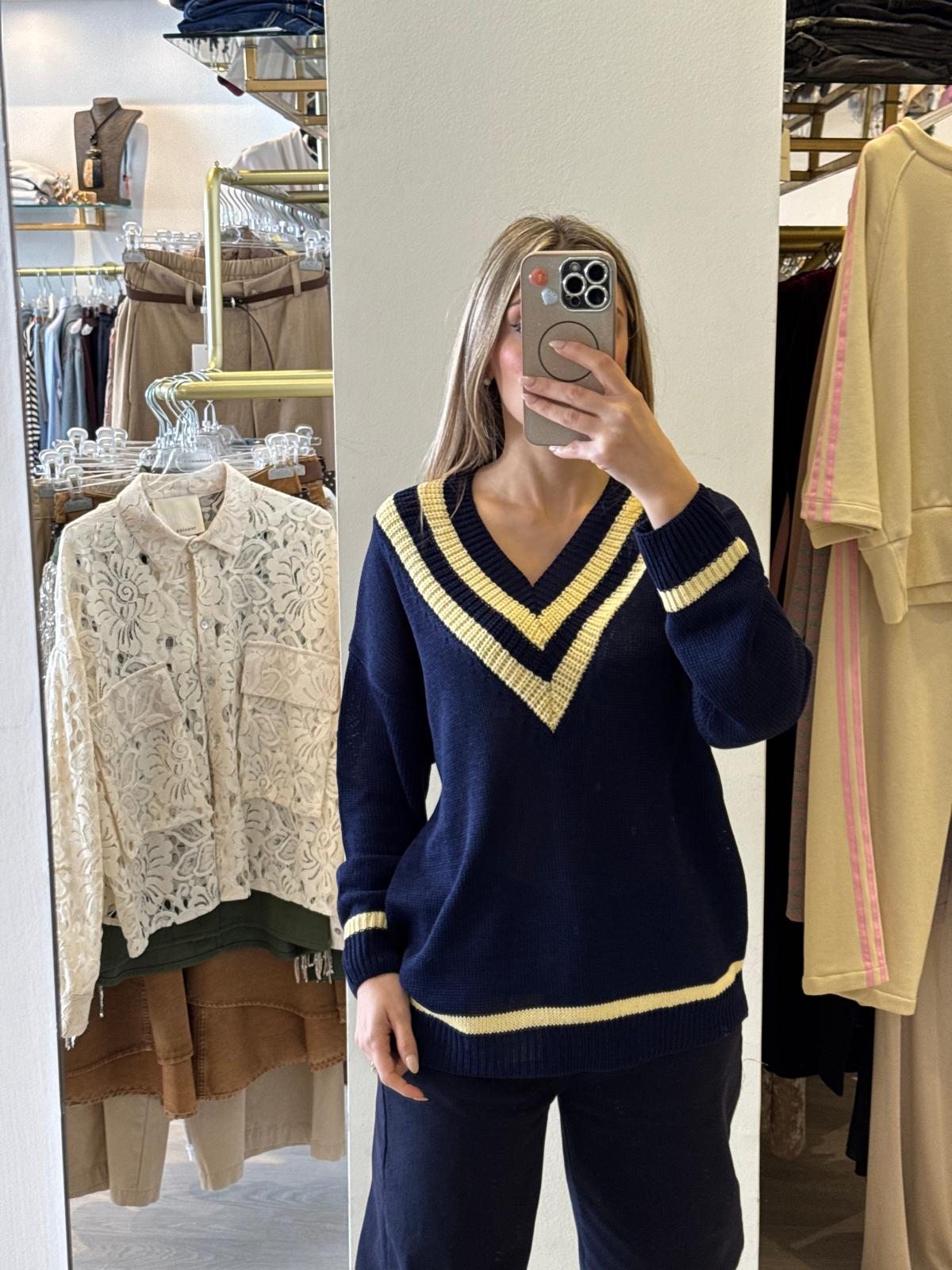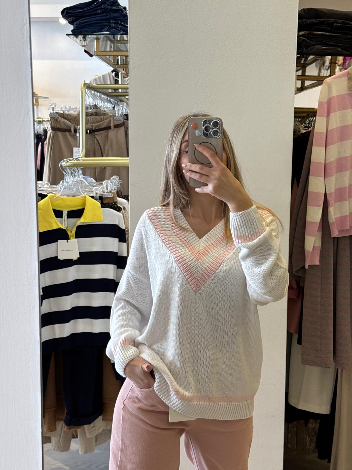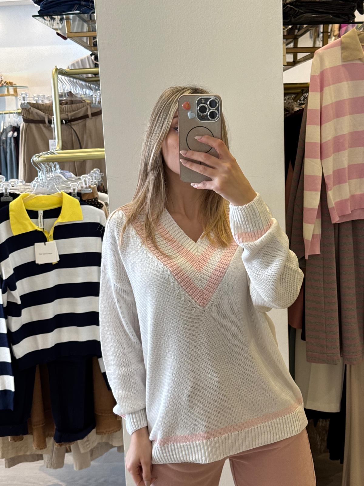 Maglia in cotone di qualità con elegante scollo a V, perfetta per uno stile oxford raffinato e versatile. Il taglio comodo e la lunghezza contenuta la rendono ideale per abbinamenti casual e smart-casual, garantendo libertà di movimento senza compromessi sull'eleganza. Un essenziale che non